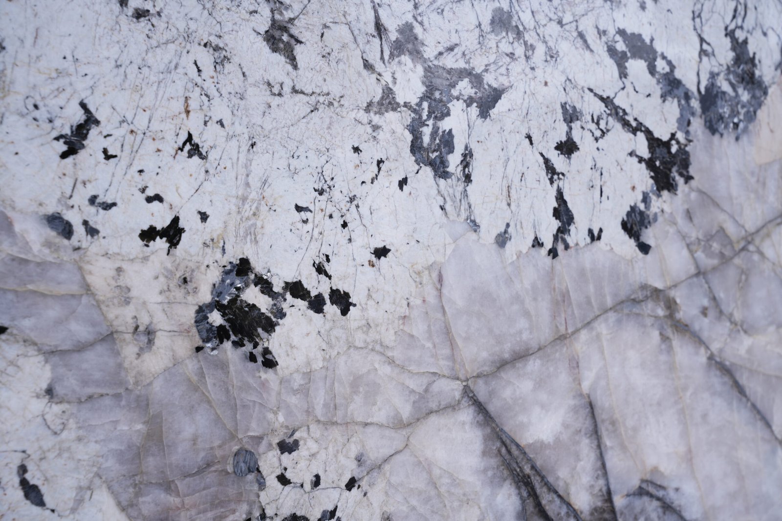 The Alaska Pentagonia Granite (Gangsaw Size) is a stunning natural stone celebrated for its dramatic veining, crystalline texture, and expansive natural artistry. It features a creamy white base infused with deep charcoal and gray mineral formations, creating a breathtaking contrast that evokes the rugged elegance of Arctic landscapes.