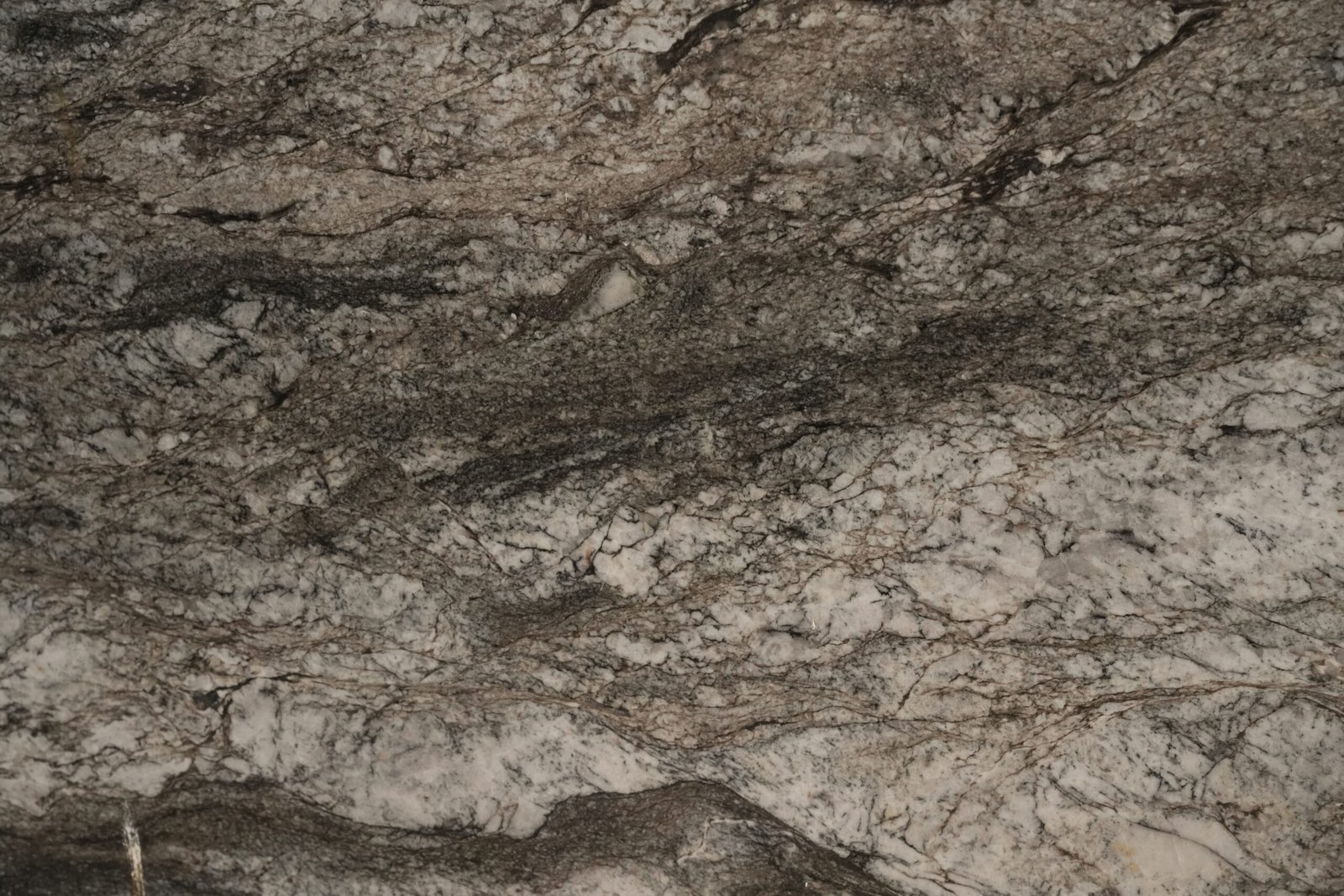 Each slab is a work of geological art, displaying fluid motion and subtle contrast — as if nature itself painted waves into stone. The combination of crystalline quartz, feldspar, and dark mineral veins creates a striking, three-dimensional texture that elevates spaces with sophistication and natural energy.