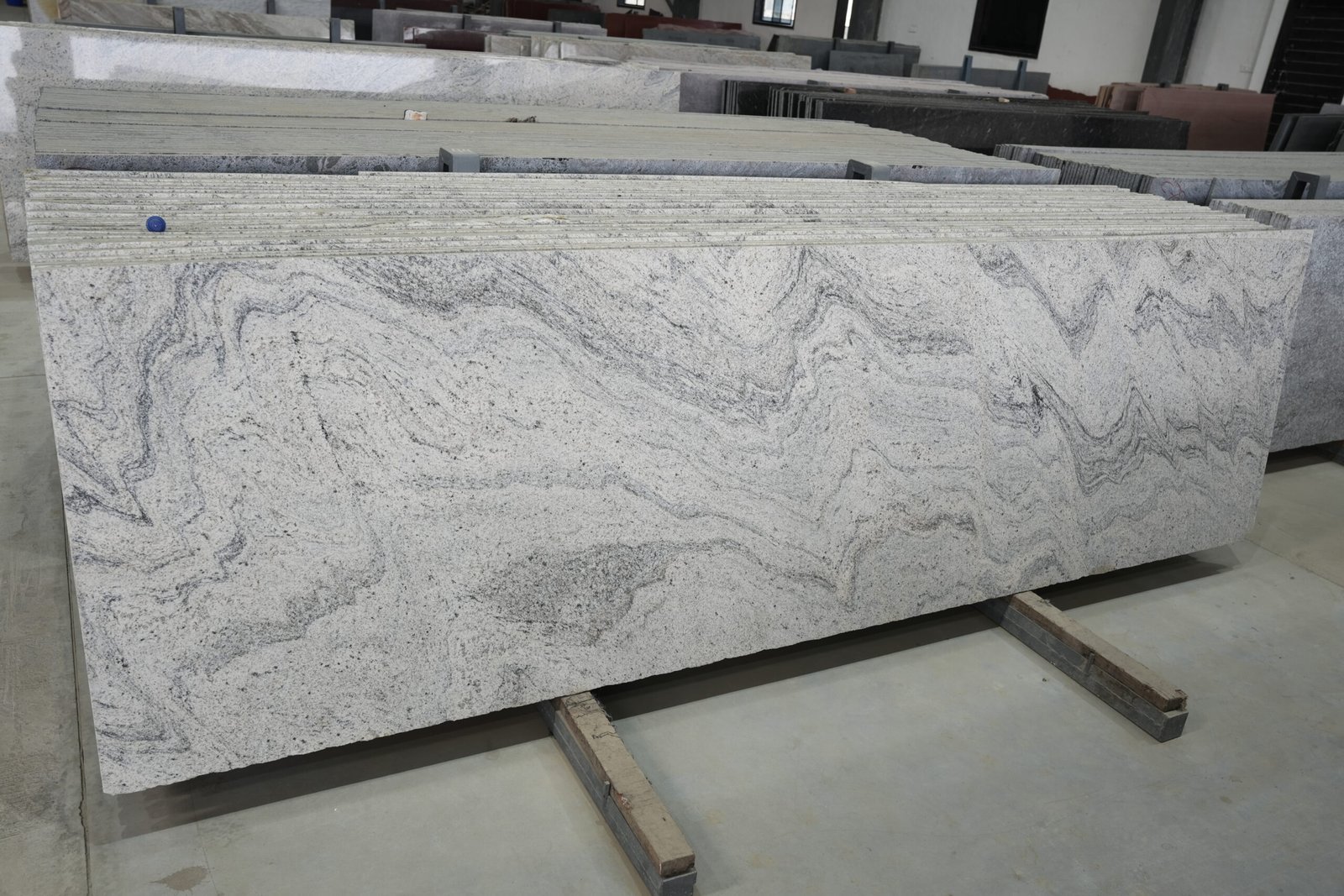 The Kashmiri River White Granite is a serene and sophisticated natural stone that beautifully captures the gentle motion of flowing water. With its soft white background interlaced with silver-gray and light violet veins, this granite evokes the tranquil beauty of a meandering river — timeless, pure, and graceful.